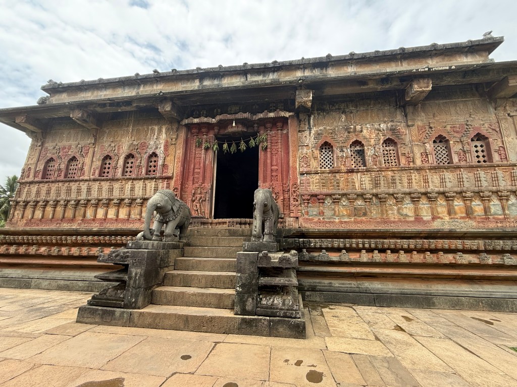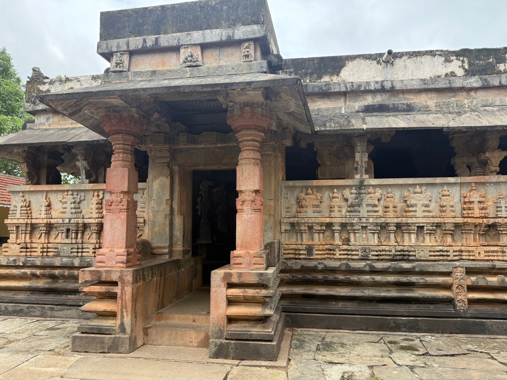 Started early after breakfast at the Royal Orchid and headed toward Sakkare Bylu to spend time with elephants and for the kids to get a chance to touch , bathe and feed them . It was definitely an experience , i would recommend getting there as soon as it opens so there are no lines for the experience. After the kids enjoyed their time , we headed to Keladi – Keladi Rameshwara Temple. This is a Hoysala-Dravida style architecture with intricate designs in the temple. This temple is believed to have been built during the Keladi Nayaka period and the town of Keladi was possibly the capital city during the times.