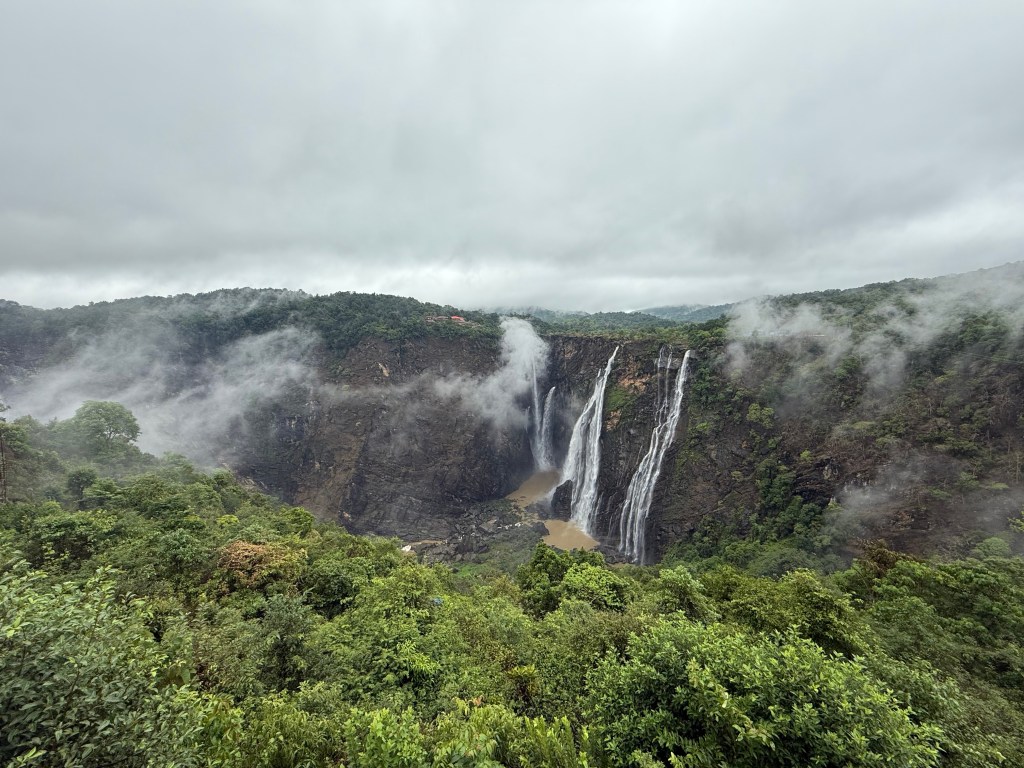 Our next stop for the day was Jog Falls. Even though this was an early monsoon trip, there was enough water to see all the magnificent falls. The entrance was under construction and there is an entry fees to see the falls. The street parking and the roads were still messy and the rain added to the messi-ness too. Nevertheless, once we entered to see the falls , there is viewing and photography areas , it was just SPECTACULAR!!! Allow time to walk viewpoints slowly—this is not a rushed stop.